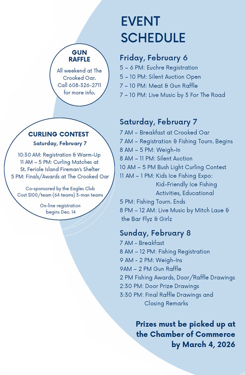Headquartered at The Crooked Oar at 32319 County K, the annual event is brought to you by the Prairie du Chien Area Chamber of Commerce and Tourism Council.